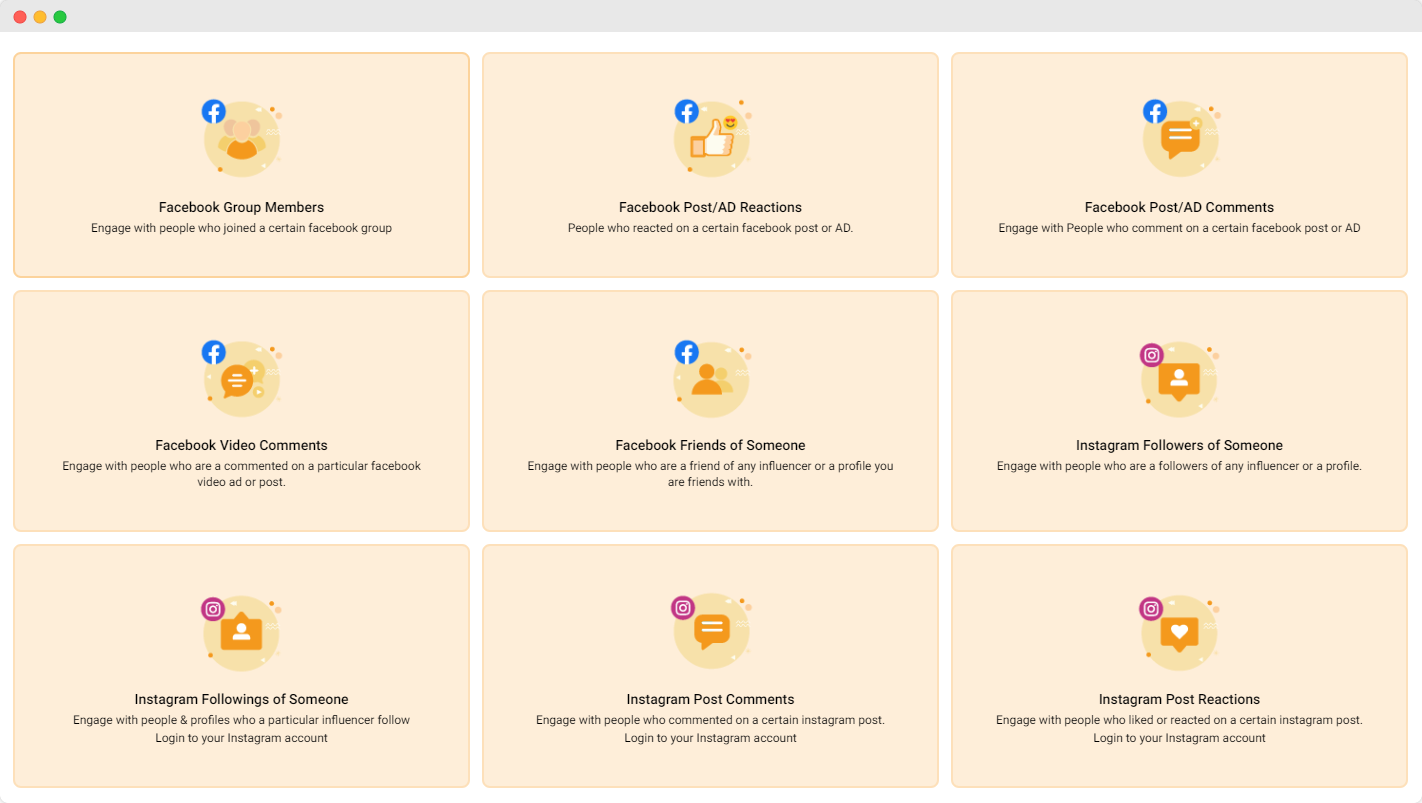 With ReachOwl, you can send a sequence of messages through Social media's direct messaging system or friend requests to the audience you build.