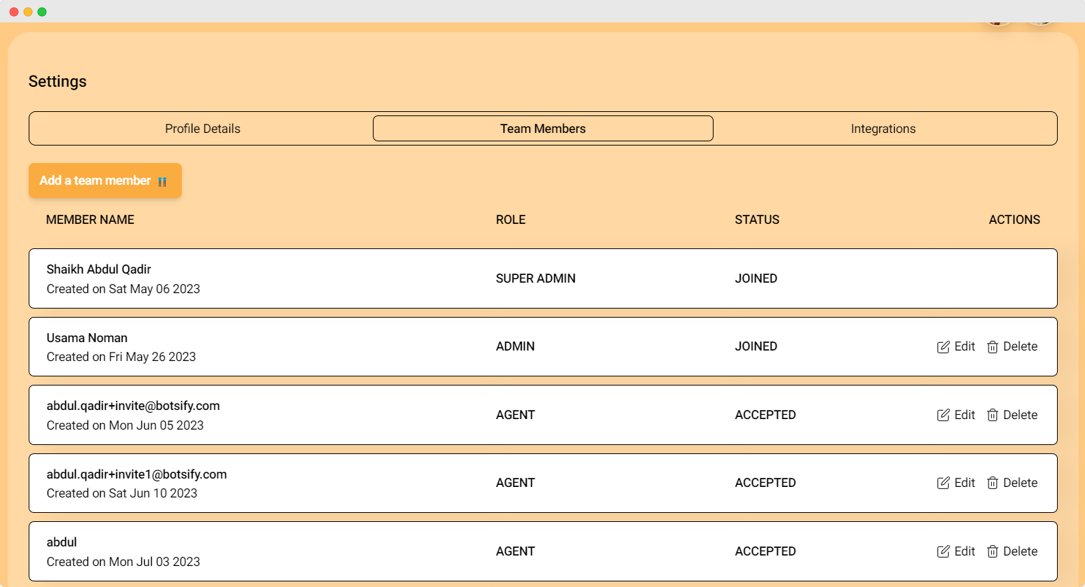 Each team member can connect their own social accounts, you can invite them as admin or as agents. You can setup campaign on their accounts from your dashboard and monitor them as the requests are made from their social accounts.