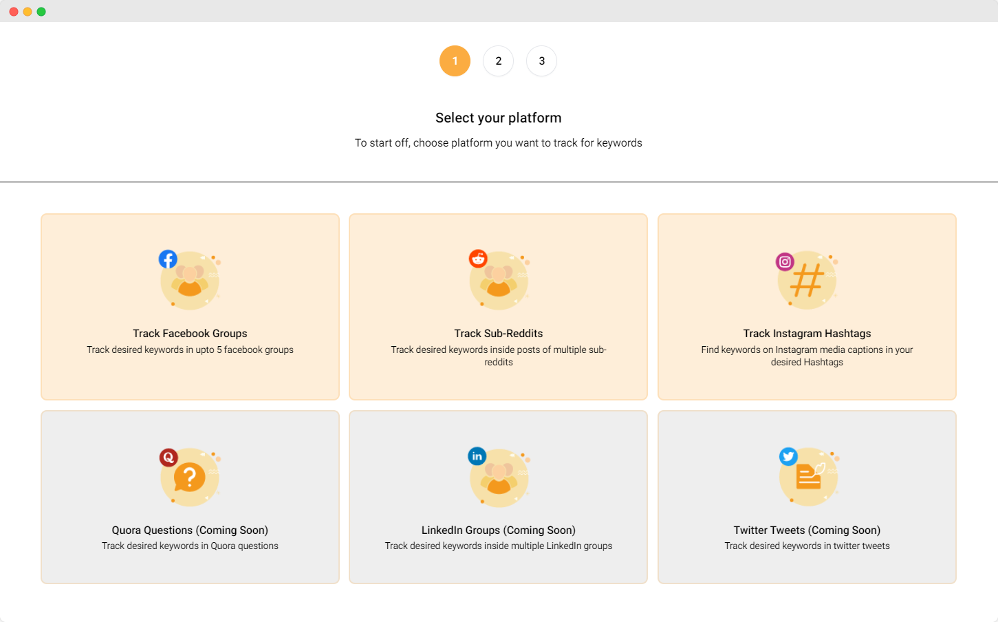 Get notified when your keywords and competitors are mentioned on the social platforms. As soon as we find your keywords inside certain groups or communities we instantly notify you so you can participate in discussions to steal your competition.